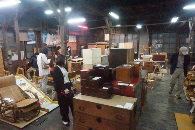 1日の販売会では、開店と同時に県内外から大勢の客が訪れ、箱や盆、座卓、衣紋掛けなど、修理され、よみがえった木製家具を見て回った。