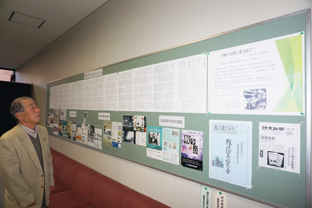 今回の展示は、いまや貴重となった戦争体験者の生の声を幅広い世代に届けようと、東近江市能登川地区老人クラブ連合会の北崎富三会長が企画した。クラブの資料整理の際に冊子を発見したのがきっかけだった。
