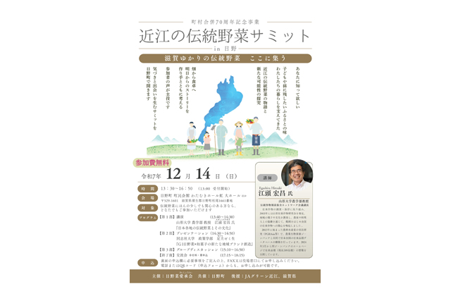 【日野】 日野町町民会館わたむきホール虹で12月14日午後1時半から、「近江の伝統野菜サミットin日野」が開かれる。