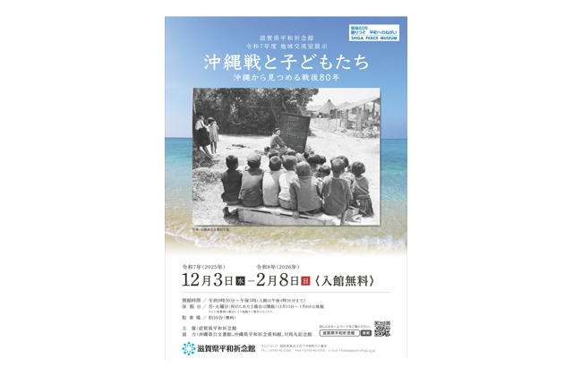 【東近江】 県平和祈念館(東近江市下中野町)は12月3日から、地域交流室展示「沖縄戦と子どもたち 沖縄から見つめる戦後80年」を開催する。会期は来年2月8日まで。