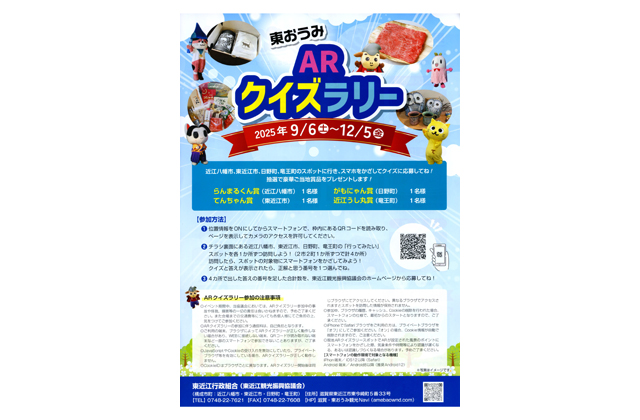 【東近江】 東おうみARクイズラリーが12月5日まで、東近江市と近江八幡市、日野町、竜王町の東近江地域4市町で実施されている。4市町のスポットを訪れ、スマホをかざしてクイズに応募すると、抽選で豪華な賞品が当たる。