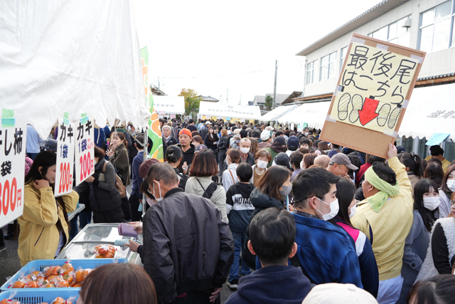 農業科や食品科、花緑デザイン科がある同校では、校庭の一部を一般開放し、生徒たちが育てた野菜などが並ぶ販売会を毎年の恒例行事で開いている。市民の関心も高く、この日も午後1時半の開場を前に、入口は長蛇の列ができた。