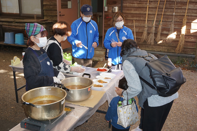 昼食には、2019年以来となるカレーライスのふるまいがあり、参加者は手づくりの味をおいしそうにほおばっていた。