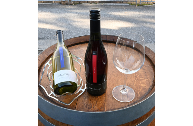 ワインは、それまでの水田から土壌改良を重ね、ぶどう栽培に適した畑(現在4・5ヘクタール)に作りかえ、土壌や気候などに適合した白ワイン用のシャルドネとリースリング、赤ワイン用のシラーなど、あわせて5品種のぶどうを栽培している。今年5月に本格的な醸造施設が完成し、このほど初出荷を迎えた。