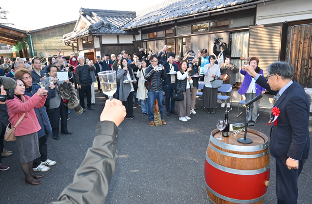 三崎清隆代表社員(40)は「2月にワイナリー施設の引き渡しを受け、初醸造の記念すべき年になりました。今年は、6月から雨が降らず、その後、猛暑が続くなど、ぶどうの生育にとって厳しい年になりました。そんな中でもいろいろ試行錯誤しながら初めてのワインができました。地域を代表するワインをめざしていきたい。また、地域の食材とペアで楽しんでいただけたらうれしい」と話した。