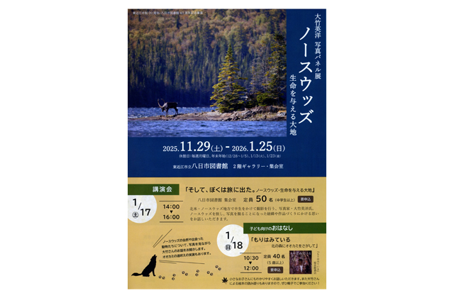 なお、講演会「そして、ぼくは旅に出た。ノースウッズ・生命を与える大地」は来年1月17日午後2時~同4時。定員50人(中学生以上)。
