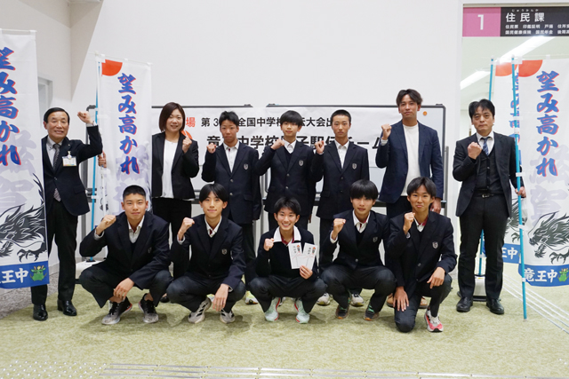 同チームは竜王中学校の中で部活動の垣根を超え、体力テストや持久走の記録がよかった生徒へ声かけして、駅伝に関心を持った生徒たちで構成されている。小澤直人顧問の指導のもと、全校体制で切磋琢磨しながら練習に励んだメンバーらは、先月14日に行われた「第76回滋賀県中学校駅伝競走大会」に大会新記録(58分28秒)で優勝。見事近畿大会、全国大会への出場を決めた(近畿大会は先月30日に開催され、10位に入った)。