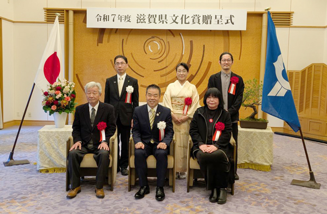 【県】 県民の文化の向上発展に対する顕著な功績や将来が期待される人や団体を県が表彰する「滋賀県文化賞」などの今年度受賞者が決定し、このほど県公館(大津市京町4)で贈呈式が催された。