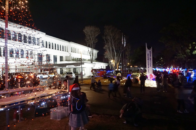今年は、市制20周年を記念してグレードアップして実施。初日にあったオープニングイベントでは、小椋正清市長と会場に訪れた大勢の住民がカウントダウン。電球が一斉に点灯すると、「きれい」と大きな歓声が上がった。八日市駅前から市役所までの約1・3キロの並木通りはイルミネーションの光に包まれていた。