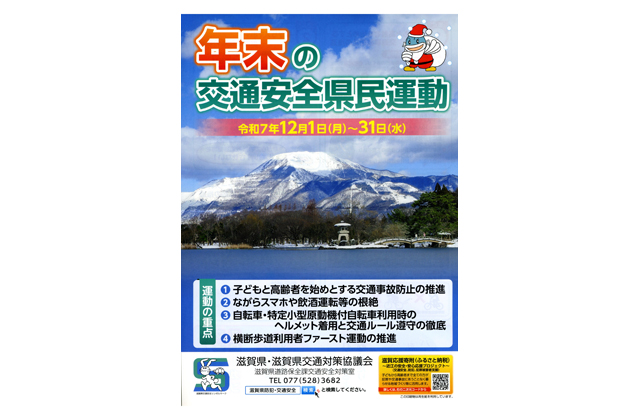今年は県下で4回の交通死亡事故多発警報が発令され、昨年に比べ交通事故による死者数が倍増している。近江八幡署の青地靖人署長は「交通事故はいつどこで起こるかわからない。竜王町では非常に熱心に交通安全啓発に取り組んでくださり、2023年10月16日の事故発生以来、今日まで798日交通死亡事故ゼロが続いている。周囲をよく見て確認することが交通安全で1番大事。これからの年末年始、その先も、油断せず事故ゼロを続けていってほしい」と語っていた。