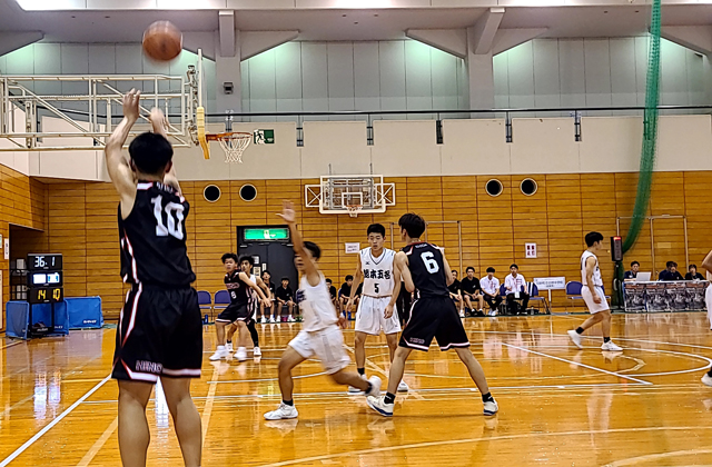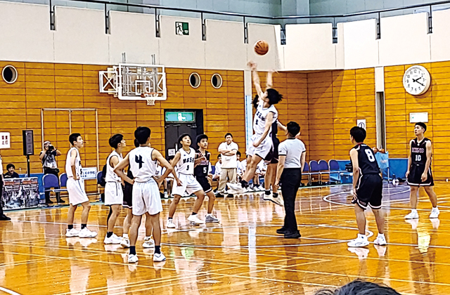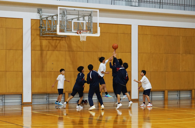 【日野】 日野町立日野中学校男子バスケットボール部は昨年、一昨年と2年連続で全国大会に出場し、両年ともベスト16入りと大活躍した。全国大会に出場する強豪チームには私立中学校や留学生が目立つなかで、地元出身の選手による公立中学校が勝ち上がるのは快挙。躍進したチームで大切にしていることは、「感謝のバスケ」だと稲垣祐汰顧問は話す。「真面目にするのも、サボってしまうのも自分次第。自分たちだけではバスケットボールはできない。支えられていることに気づき、一生懸命にプレーすることで感謝が伝わるようなバスケをしよう」と日頃から部員に伝え、生徒たちも部のスローガンを「己に打ち勝て」と定める。練習は週に5回、約1時間~1時間半ほど。基礎練習や実戦練習に汗を流し、大会前には外部コーチ指導のもとより細かな戦術を固める。全国大会を終えて主力としてプレーした3年生が引退し、1、2年生による新体制が始動。カスティジャ・コウスケ新キャプテンは「1人1人の個人プレーを成長させながらチームプレーを大切にしていきたい」と抱負を語り、次戦を見据えた。(矢尻佳澄)