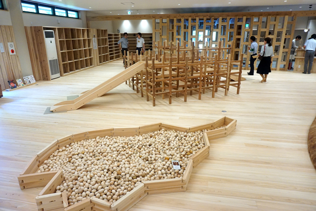 びわ湖材をふんだんに活用 県内をはじめ国内外の木の玩具で遊べる