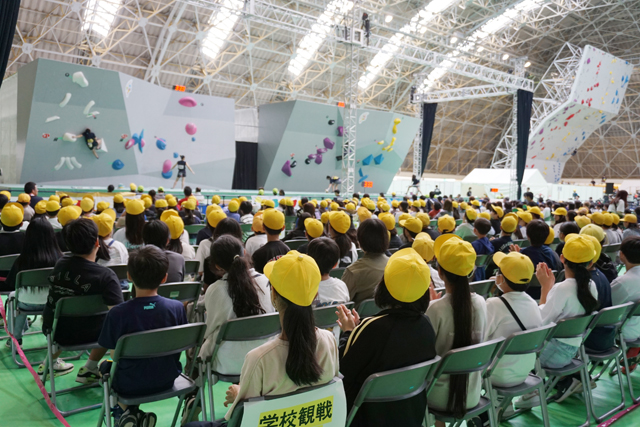 国スポ競技本番では規定に沿う仮設ウォールをドラゴンハット内に組み、常設のドラゴンボルダリングジムは選手のウォーミングアップに使用された。競技初日には町内の小学生を招待した学校観覧も行われ、「ガンバ!」とスポーツクライミング定番の掛け声で選手を応援し、プロのMCが盛りあげる華やかな会場の雰囲気を体感した児童らは「選手たちの登っている姿がかっこよかった」と声を弾ませた。屋外エリアには町内外の事業所・飲食店によるおもてなし会場が設置され3日間でのべ8800人が来場した。