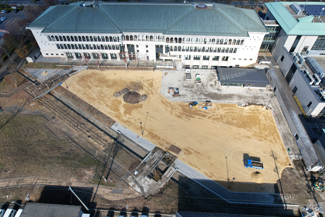 【東近江】 東近江市役所(八日市緑町)の南側に隣接する川合寺児童公園で、今年3月のリニューアルオープンを目指して再整備工事が進められている。市役所庁舎と一体となった公園整備により、まちに新たな魅力が加わる。これは市制20周年記念事業として、昨年5月に着工したもの。新名称は、広報ひがしおうみ2月号で公表する。