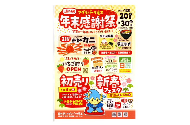 【竜王】 竜王町山之上の道の駅「アグリパーク竜王」で「年末感謝祭」が開かれている。30日まで。