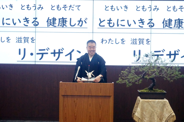 【県】 5日、仕事始めとなった県庁で三日月大造知事が新年のあいさつを行い、新年の抱負として「ともいき ともうみ ともそだて『ともにいきる 健康しが』づくりを更に進めていく」とし、「そのために明日へ、未来へ、2050年へ。私を、自分を、滋賀を、社会をリ・デザイン(再設計・最適化)して新しい道筋、羅針盤を示し、拓いていくことを呼びかけたい」と語った。