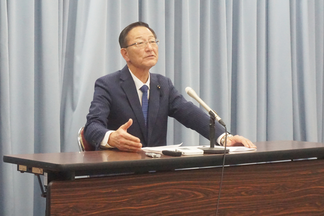 県庁で記者会見を開いた重田氏は「現職の小西理市長より、市政の歩みを引き継いでほしいと要請を受けた」とし、「市の教育委員長、市議会、県議会で培ってきた経験を生かし、市と近隣市町、県、国をつなぐ市政運営と市民サービスの向上に努めていきたい」と意気込みを語った。