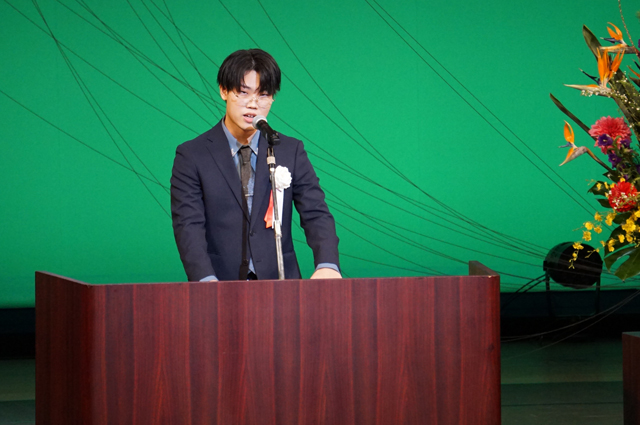 「二十歳の誓い」では、成人式実行委員長で理学療法士を志す深尾大夢(ひろむ)さんが、「専門職として、1人の大人として、相手に寄り添い、相手を理解し、尊重する姿勢を大切に、これからも夢に向かって努力を続けていきたい」と将来の抱負を語った。