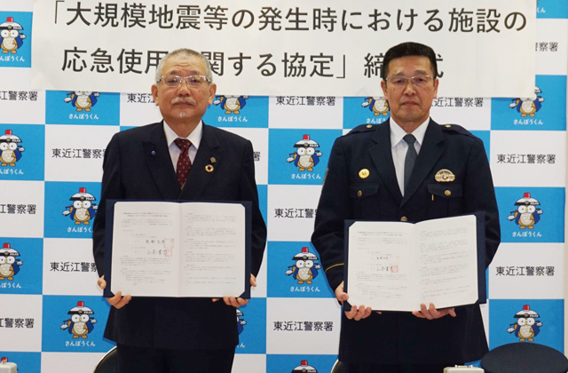 協定では、築48年になる東近江警察署が大規模地震によって一部倒壊するなど、警備本部として機能をなくした場合を想定し、協定を結ぶ施設に警備本部が設置されるというもの。