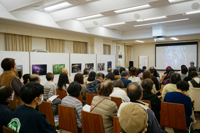 八日市図書館では昨年、東近江市制20周年と八日市図書館40周年という節目を迎え、その記念事業として今回、開館以来大切にしている「人と自然のより良いあり方を考える」という思いに重なる理念を掲げる写真家・大竹さんの講演会と写真パネル展(25日まで)を実施。講演会には市内外より約50人が集まり、大竹さんの語る貴重な大自然の話に耳を傾けた。