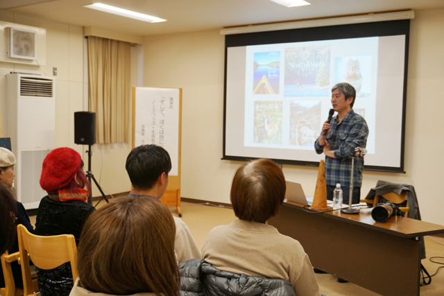 また講演会後半では、ノースウッズで撮影した写真をスライドに映しながら、ノースウッズの四季や撮影時の移動手段として湖で活躍するカヌー、水上飛行機などを紹介。写真集をつくる際には「北国ならではの自然風景、野生動物の姿、旅をするための無限のフィールド、土地で暮らす人々。この4つの柱を大事にした」と語り、最後に「失敗を恐れることなく、常にチャレンジする気持ちをこれからも大切にしたい」と結んだ。