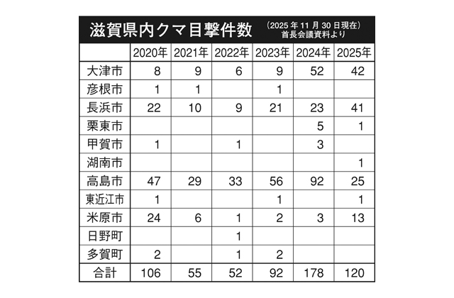 今年度、県内ではクマによる人身被害(裂傷、骨折など)が2件発生(2025年11月30日現在)。いずれも長浜市内だったことから、浅見宣義長浜市長が議題として取り上げた。