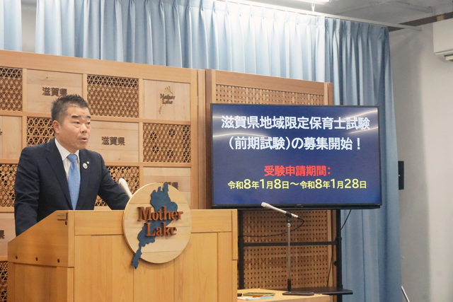 受験申し込み受付期間は28日午後5時まで。申し込みは文末二次元コードから(申請時は滋賀県の地域限定保育士試験を選択すること)。