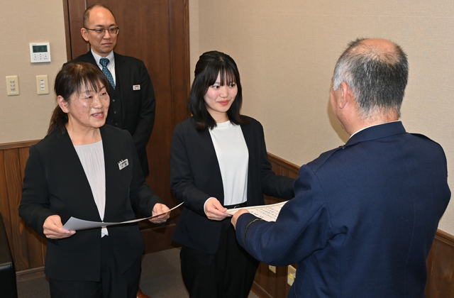 初めて感謝状を贈られた別所さんは「早く、千貫さんに(男性が困惑しているようすを)伝え、男性が被害に逢わなくてよかった」と話した。千貫さんは「これまでにも詐欺ではと思った経験があり、お客さんに寄り添うように声かけをしたことがあります。会話の後には男性が勇気をもって、状況を話していただいたのでよかった。お客様の大切なお金が守れてよかった」と振り返った。その後、千貫さんは、男性宅を訪問し「(あの時は)怖かったですね。もう(お金は)大丈夫ですよ」と安心を届けた。