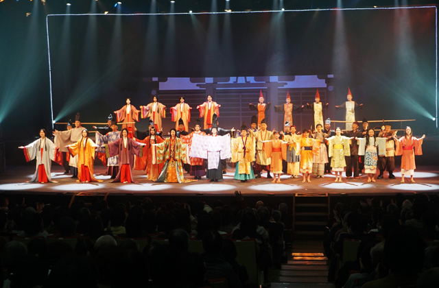 歌あり、ダンスあり、華麗なステージで、惟喬親王の生き方を通して「人の幸せや誇り」「人と自然の関わり」が問いかけられ、フィナーレでは客席から大きな拍手が送られていた。