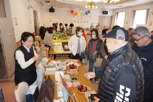 会場には手作りの洋菓子や和菓子、弁当、パンといった食品のほか、手工芸などの雑貨やマッサージなど12事業者のブースが並んだ。事業者らは来場した地域住民らに自慢の商品をPRしたり、事業者同士で交流を深めるなど、今後の事業展開に向け有意義に接客していた。
