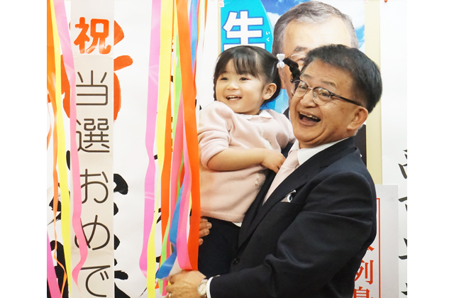【東近江】8日投開票の衆院選で、近畿比例で自民の小寺裕雄氏(65)が4期目の当選を決め、東近江市春日町の事務所で支援者らと喜びを分かち合った。小寺氏は名簿順が単独1位のため、投票が締め切られた午後8時過ぎに当選確実となった。今回の衆院選を振り返り、自民党の勝因を小寺氏は「高市内閣の3カ月間の実績と、総理の『自分がこれから国の舵取りをするんだ』という決意も合わせて、有権者の皆さんに理解された結果だろう」と語り、「今から約8年前に国政に出て、おかげさまで4回目の当選を果たすことができた。自分は地域課題の解決を1つの大きなテーマに掲げている。農業の食料安全保障、生産者支援、そのための基盤整備に力を入れたい。また、地方はまだまだインフラ整備などやらなければならないことが山積している。そうした課題にも取り組んでいきたい」と抱負を述べた。