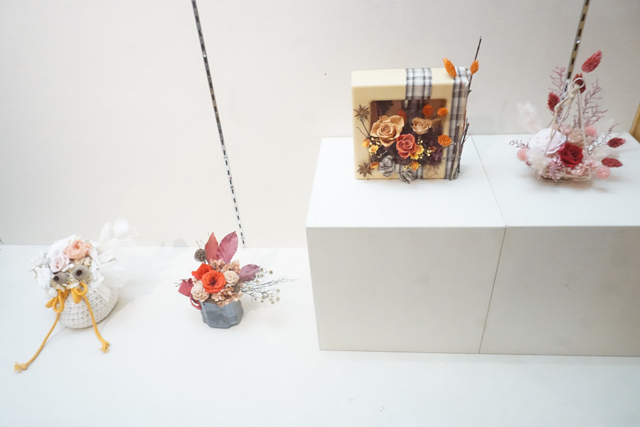 【竜王】 竜王町立図書館(同町綾戸)展示スペースで竜王町の自主文化活動グループであるフラワーサークル「なでしこ」の「プリザーブドフラワー展」が開かれている。27日まで。