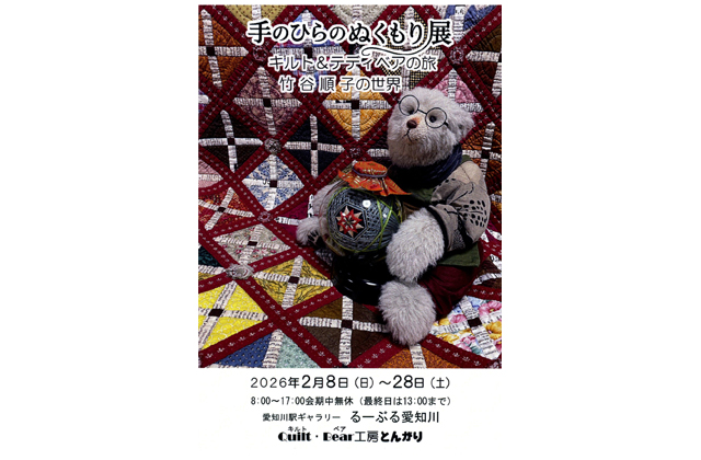 【愛荘】 パッチワークキルトとテディベアの作品展「手のひらのぬくもり展 キルト&テディベアの旅 竹谷順子の世界」が、近江鉄道愛知川駅併設のるーぶる愛知川ギャラリー(愛荘町市)で開かれている。28日まで。