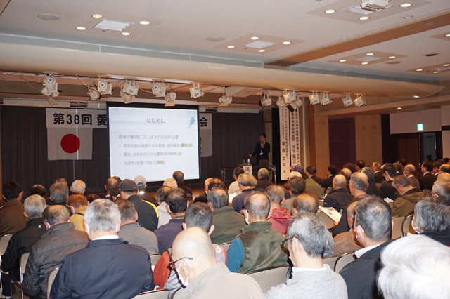【東近江】 第38回愛知川農業水利研究集会が14日、アピアホールで開催され、土地改良区組合員や行政関係者らの約300人が出席し、近年の農業情勢の知識を深めた。