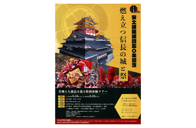 【近江八幡】安土城築城450年協議会は、3月14日、15日に催される左義長まつりに合わせて実施する「名城と左義長を巡る特別体験ツアー」の参加者を募集している。