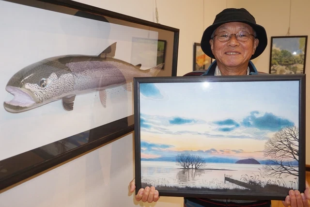 特選の賞状を手にする林さん(左)と村國日本銀行情報サービス局長