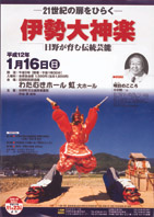 第一部は渋谷章社中の公演、第二部は小沢昭一氏の特別講演「明日のこころ」、第三部は「創作・伊勢大神楽2000」となっている。