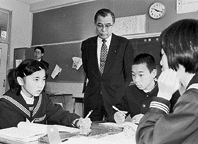 吉川勉県教育長は十九日、県内に十七校(うち五校は休校中)あるへき地学校の一つ、永源寺町政所の政所中学校(小杉正男校長、生徒数二十五人)を訪問し、授業の様子などを視察した。