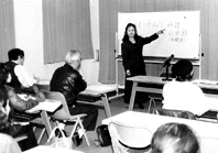 教室には、仕事帰りのサラリーマンやOL、主婦ら三十人(定員)が受講。開講に先立ち佐藤弘明事務局長が「ハングル語を覚えるだけでなく、真の隣人友好の足がかりになるよう期待します」とあいさつ。このあと、講師を務める市人権擁護審議会委員、郭宇美さんが「在日二世として日朝韓の交流にお役に立てることが出来れば、と思います」と期待を寄せた。
