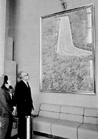 今回の寄贈は、昨年四月に同町近江商人博物館で個展を開いたことをきっかけに「町の文化振興に役立てて欲しい」と仁志出氏自らが申し出たもので、寄贈された作品は伊吹山のドライブウェイを描いた作品「高原」(百五十号)とヨーロッパの風景を描いた作品「教会への径」(六十号)の二点。仁志出氏は昨年の同町十二月議会により同町の名誉町民に選ばれている。