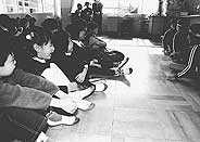能登川西小学校では、五年生児童らに連れられての学校案内が行われたあと、一年生との交歓会が催された。