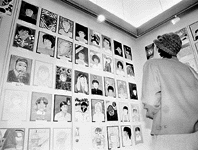 会場には、デッサンやユニークにデフォルメされた作品などな約三百四十点が壁いっぱいに飾られ、その一つひとつに思春期の青少年たちが抱く豊かな感情や心の葛藤などが表現されている。