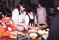 五個荘町公民館で、このほど料理を通して親と子のふれあいを図る「親子料理教室」が開かれ、町内在住の親子三十五人が共に作る楽しみと春の味覚を味わった。