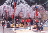 最も多いホイノボリが持ち寄られるのは、日枝神社(大窪)の「南山王祭り」の二十二本。華やいだ境内では神事が行われるほか、地域の住民が酒を酌み交す春らしい光景が繰り広げられる。