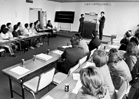 八日市署管内(八日市市、永源寺町、五個荘町、能登川町)で交通安全指導にあたっている交通指導員や八日市地区交通安全協会女性部員らを集めて、交通安全教育技法研修会が九日に八日市市役所別館で開かれた。