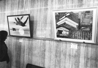 昨秋の第44回近江八幡市美術展覧会で特選に選ばれた絵画と染色の作品が、市役所ロビーに展示された。