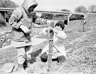 永源寺町商工会婦人部(野田花江部長、部員数七十九人)は二十二日、「春にもたくさんの観光客を」と同町山上の渋子川一帯や愛郷の森などにサクラの苗木を植樹した。