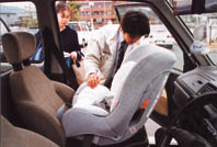 チャイルドシートおよびジュニアシートの着用義務化に伴い、シートの貸出事業を始めた各市町村では、一日から連日、ぞくぞくと訪れる貸し出し作業に追われた。