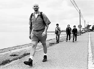 交通網の発達した今となっては、これほどの距離を一気に歩く機会はほとんど無く、コース半ばには若さあふれるさすがの生徒たちも少々疲れ気味。それでも自らの足が頼りと歩き続ける生徒たちは、時折砂浜で仲間とふざけ合うなどして楽しみ、励まし合いながらゴールを目指し、それぞれの額にさわやかな汗を輝かせていた。