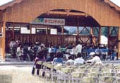 コテージやオートキャンプ場などを備えた日野町のアウトドア施設「グリム冒険の森」(熊野)がこのほどオープンし、町内外から多くの家族連れが訪れた。会場では、地元のオーケストラやダンスチーム、フリーマーケットが催され、にぎやかな雰囲気を盛り上げていた。